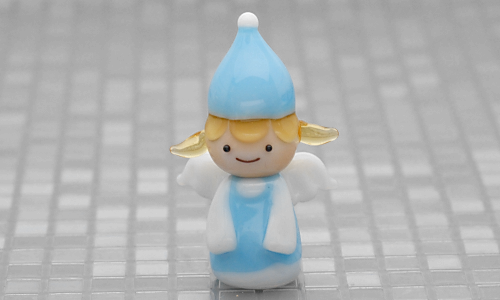 帽子エンジェル(水色) Posted on 2020年1月2日 価格:800円サイズ:幅1.8㎝購入先:デザインキャンドル ピュア 水色の服の天使のガラス細工です。袖の部分が広がっているところと元気な感じの髪型がポイント。
