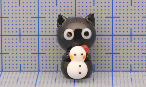 雪だるまを持っている黒猫のガラス細工です。