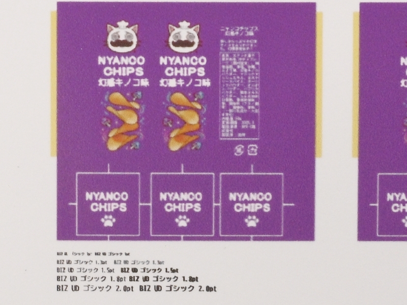 印刷後の写真です。ついでにフォントサイズチェック足しました。